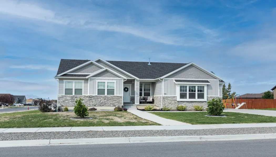 This spacious rambler offers an open concept floor plan with a roomy family area showcasing a gas stone fireplace and vaulted ceilings. You will find many upgrades throughout the house. The gourmet kitchen includes double wall ovens, tile backsplash, gas cooktop, matching stainless steel appliances, quartz countertops, ceiling height cabinets with crown molding and glass fronts. Relax in the primary retreat and en suite bathroom featuring dual vanities, walk in closet, and separate tub and shower. The unfinished basement has a cold storage area and is ready for your design with plenty of room for additional bedrooms, a large gathering area, and is plumbed for a bathroom. Large 3 car garage has epoxy flooring and the driveway has plenty of parking for an RV, boat, or other outdoor toys. The backyard is a blank canvas waiting for your touch! Retaining wall materials worth over $5,000 are included in the purchase. Grantsville offers affordability, open spaces, mountain views, and outdoor recreation. Enjoy the rural feel of this community with easy access to the city. The Deseret Peak Complex is only 7 minutes away and hosts a wide variety of events and activities. 15 mins to Tooele with many shopping and dining options, 30 minutes to the Great Salt Lake, and 45 minutes to downtown Salt Lake City. Dont miss this beautiful home with flexible interior and exterior opportunities to make it your own!