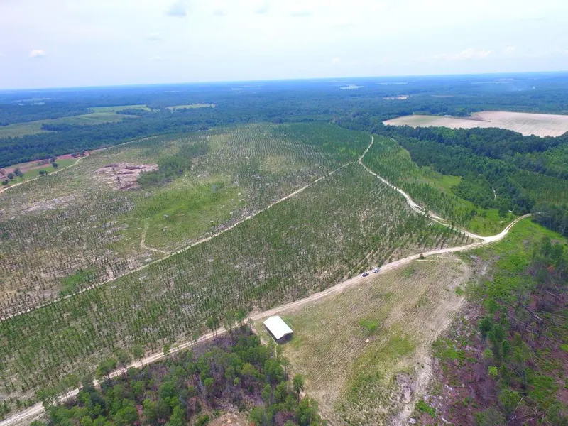 This tract has 145 acres planted in 7 year old Long Leaf pine. Just starting to rake it this year. There are 30 acres in 1 year old Long Leaf pine and 70 acres in natural hardwood on Cobbs Creek. There is 1.5 miles of creek frontage.