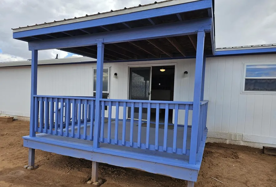 Beautiful home! Ready for your garden and animals! 15 minutes to I-40. 2 acre fenced parcel. Shared well is extra deep. Underground utilities. Horses welcome. home features extra large eat in kitchen plus adjacent formal dining room. Upgraded granite countertops, new stove, microwave, and dishwasher. Upgraded refrigerator in kitchen + refrigerator/freezer in laundry room. Separate primary suite with 2 walk-in closets. Convenient hall bath to bedrooms, laundry room, back patio and kitchen. New flooring in kitchen and bedrooms. 2x6 construction made in Nebraska for high winds and snow. Great entertaining patio just off kitchen. 35 minutes from Abq. Seller will consider $5,000 finance/ closing cost assistance. Concrete foundation meets FHA/VA standards. Totally fenced. Ready to go!