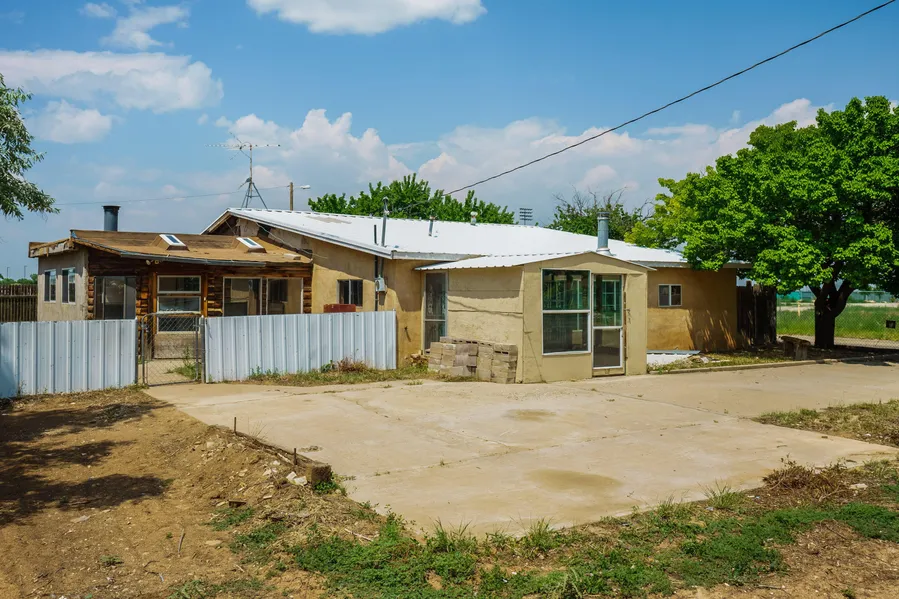 Lots of potential and possibilities with this adobe house with metal roof on a large .34 acre corner lot in Moriarty. Two bedrooms (possible 3 bedrooms) and 1 3/4 bath. Fenced lot. City water and city sewer. Note: Non-working well on the property.