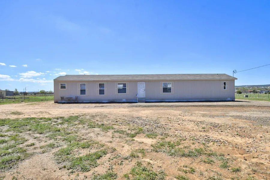 Country living convenient o ABQ. Updated flooring, fresh paint, new heating and cooling. Great open floor plan with Living room, dining room and kitchen in the center of the home. Primary bedroom at one end and the 2nd and 3rd bedrooms with hall bath at the other end. Laundry just off the kitchen for extra storage and back door leading to open Patio including some comfy patio furniture. Enjoy the open space with your morning coffee or that refreshing cocktails in the evening.