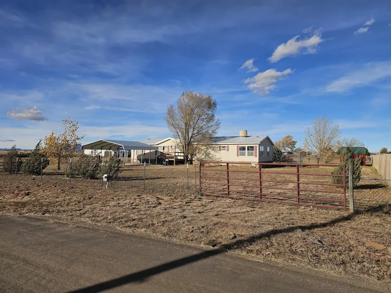 Spacious 1,960 sq. ft. manufactured home on a permanent foundation with 3 beds, 2.5 baths, two living areas, and a dedicated office. The kitchen offers excellent cabinet space, and the split floorplan provides privacy with the primary suite separate from guest bedrooms. Laminate floors throughout, metal roof, and no carpet. This property stands out from newer installs in the area with its established landscaping, mature trees, full fencing, dog run, 2-car carport, storage shed, and backyard access--amenities that would cost thousands to add. Move-in ready with room inside and out!