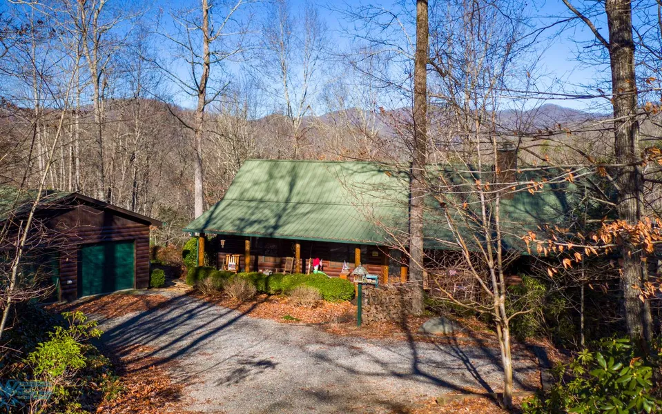VERY UNIQUE PRIVATE NORTH GEORGIA MOUNTAIN LOG CABIN! This immaculately maintained 3 bedroom(master on the main & guest bedrooms on upper & lower levels) /4.5 bath(master bath w/ large walk-in shower & bubble tub) custom log home offers an open floor plan, great room w/ stacked stone gas log fireplace & builtin book shelves, vaulted pine ceiling, hickory floors, beautiful blend of wood & drywall, mountain laurel staircase, artist loft, Theater room w/ sound system, office w/ custom built-in bookshelves, a kitchen on main & lower levels, a laundry room on main & lower level, security system, central vacuum, open air wrap around deck w/ outdoor fireplace & screened porch, oversized 2 car detached garage with workshop and half bath + green acres private outdoor shower, large stone fire pit. PLUS year round easy gentle paved road access. Remodeled, new roof & garage installed in 2004. UNIQUE COMFORTABLE CABIN FOR YOUR MOUNTAIN ADVENTURES.