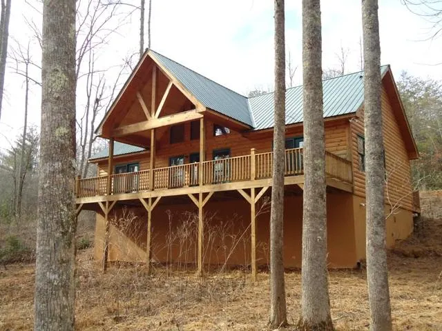 Great log cabin on 1.04 level creek front lot! Featuresd include gas log fireplace , wood floors, Jacuzzi tub in master bath, large deck to sit and enjoy the sounds of the creek, add the circular drive off of a paved road and you have the whole package!