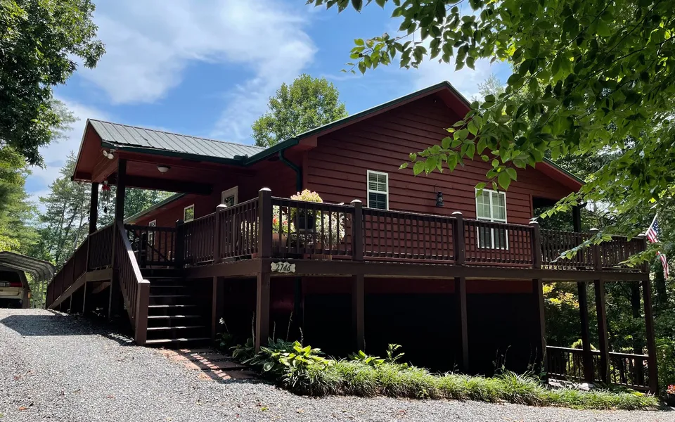 PRIVATE NORTH GEORGIA MOUNTAIN CABIN!! Surrounded by tall hardwoods, this private spacious cabin offers an open floor plan, vaulted ceiling in the great room, gas log fireplace, oak wood floors, kitchen with gas stove & pantry, 2 bedrooms on the main level including the master, and on the lower level is a living room, a third bedroom, an office, covered decks on both levels with a wrap around deck on the main level, a one car carport and 1 out building. Privately located, this home would make the perfect North Georgia mountain retreat.
