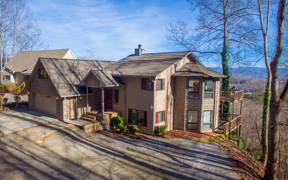BIG YEAR ROUND VIEWS OF LAKE CHATUGE AND THE NORTH GEORGIA MOUNTAINS !!! This home offers 3 Bedrooms, 2 Full Baths, 2 half baths, and open floor plan with a wall of windows to enjoy the lake & mountain views, Brazilian Cherry floors in the great room, dining & kitchen, stainless appliances, lots of cabinets, nice size kitchen & dining room for entertaining, master suite w/ lots of windows, master bath with large jetted tub, separate shower, den/game room, office to work from home on lower level, oversized double garage with bonus room over garage. 1.1 acres for privacy, great location, close to Lake Chatuge, Brasstown Valley Resort shopping and dining.