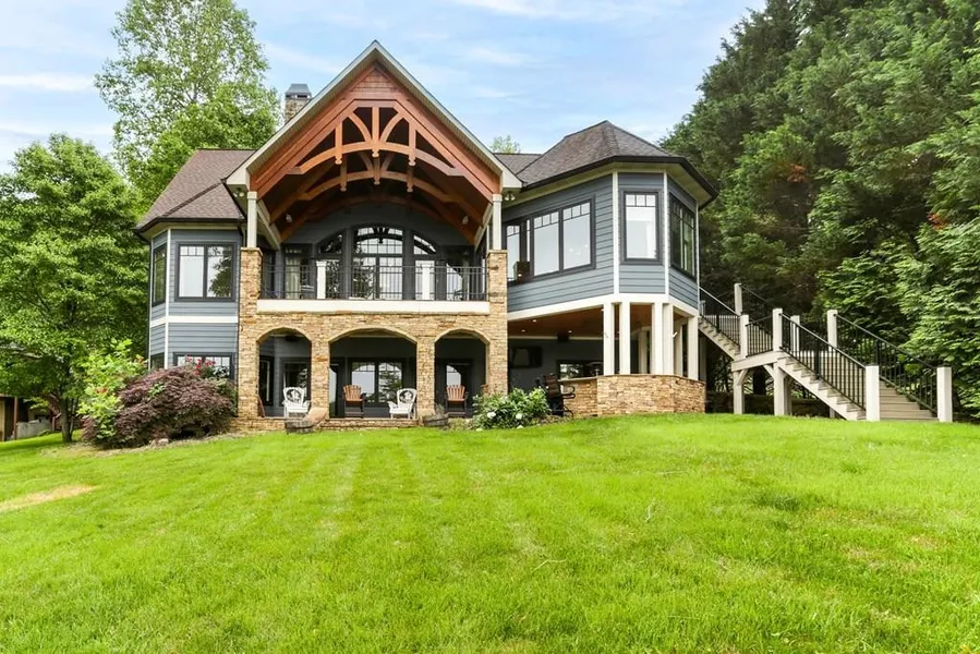 Welcome to lakeside opulence, where every detail of this Lake Chatuge abode reflects the pinnacle of luxury living. The home's open floor plan seamlessly integrates into the great room, graced with a cathedral ceiling, exposed beams, and a majestic floor-to-ceiling stacked stone gas log fireplace. Walls of windows paint serene water vistas, allowing natural light to dance upon a tasteful blend of wood and drywall finishes. The heart of the home is its vast kitchen, boasting granite counters and a gas stove, complemented by a substantial dining area, perfect for hosting memorable gatherings with loved ones. Two ensuite bedrooms provide private havens, with the primary suite offering a lakeside sitting area, his and hers closets, plus a spa-like bathroom featuring an air tub, and a walk-in shower encased in glass and tile. A conveniently located laundry room adds to the practicality of dis...