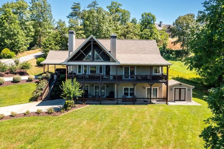 Fully Furnished, Quality Built Home with Big Mountain Views in North GA! This stunning North Georgia home offers unparalleled mountain vistas & quality craftsmanship throughout. Main Level Features an open floor plan with a great room with a floor-to-cathedral ceiling stacked stone gas log fireplace, a beautiful blend of wood & drywall, oak wood floors, walls of glass to soak in the breathtaking mountain views, a gourmet kitchen equipped with granite countertops and stainless steel appliances, a 20X20 sunroom with a 2nd floor to ceiling stacked stone gas log fireplace, , a master suite with a tray ceiling, a luxurious bathroom with a walk-in glass & tile shower, & a jetted tub, a guest bedroom and bathroom plus a conveniently located laundry room, & a spacious covered & open air back deck with an outdoor fireplace, perfect for entertaining or enjoying peaceful evenings. The terrace level features a 2nd full kitchen with granite countertops & stainless steel appliances that is ideal for extended family or guests, a 2nd great room with a dining area & an electric fireplace, another guest bedroom & bath PLUS a bonus room, tons of storage & a concrete patio to relax on while enjoying the close big mountain views. Both levels have their own concrete driveways and there is a 12X14 shed for additional storage. This home perfectly balances luxury and comfort, offering ample space for both relaxation and entertainment. Finally, the home was beautifully landscaped by a professional landscaper and has the added security of a security alarm. If you are looking for a move-in ready home in the North GA mountains then this is a must see home.