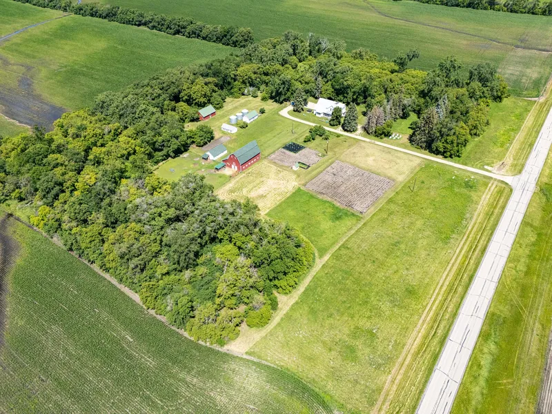 Outside, the amenities are equally impressive. A freshly graveled drive leads to an attached two-car garage, yet many hobby farmers will gravitate toward the separate two-stall detached garageoversized, insulated, and wired for 220-volt servicethat can house a pair of vintage tractors, a horse trailer, or even function as a dedicated tack and feed room should you wish to convert the space for equine use. For larger livestock needs, the classic red 40-by-60 barn stands ready in near-pristine condition. Recent structural shoring, a new steel roof, and updated doors mean the loft can safely store thousands of bales while the lower level features multiple matted stalls for horses or calving cows, a built-in chicken coop with exterior run, and ample aisle width for grooming or veterinary care. Adjacent lean-tos shelter implements, hay wagons, or goat housing, and water lines have been stubbed in so every paddock can access frost-free hydrants. The acreage itself is a gardeners paradise: fertile loam once tilled for small-grains now supports an established orchard of apple, pear, and plum varieties selected for hardiness and vigorous yield; asparagus and rhubarb crowns line the fenceline; raspberry and strawberry patches burst with fruit; and an immense vegetable gardeneasily enlarged thanks to the flat, open back lotsalready produces an abundance of tomatoes, peppers, cucumbers, squash, and tender greens. If a market-garden venture calls to you, the soil is ready, the irrigation is set, and a nearby gravel pad would be an ideal future site for a farm-stand or hoop-house. Livestock graziers will appreciate that roughly ten acres are partially fenced with high-tensile wire, perfect for rotational paddocks; additional perimeter posts are on site should a new owner wish to complete the enclosure for a cow-calf pair, a small beef herd, or browsing goats. Rural water service supplies the house, yet a high-capacity private well remains hooked up for livestock tanks and garden drip lines, affording redundancy and keeping utility costs low. Hunters, meanwhile, will value that the north woodlot has been selectively thinned and seeded to clover and brassica food plots; multiple deer stands overlook these clearings and trail-cam photos confirm regular visits by trophy-class whitetails drawn to the orchard windfalls and edge habitat. Morning rides along the mowed paths reveal pheasant flushes and the occasional flock of migrating turkeys, while evening strolls often coincide with sandhill cranes cutting silent silhouettes across the sunset.