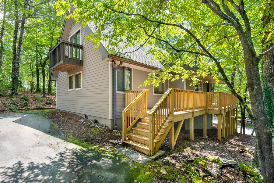 Every home needs a proper frame - 789 Dotsi is framed by mature trees on 0.72 acres. An ideal mountain lifestyle in Connestee Falls, a club community that lives like a private state park with four mountain lakes, waterfalls, miles of hiking trails and full club amenities including golf, tennis, pickleball, wellness center, clubhouse and much more. With an open floor plan, vaulted ceilings and updated custom cabinetry, the main level is perfect for entertaining your guests, as well as the newly added partial wrap-around porch. The master is located on the main, as well as an office that could be converted into a third bedroom with the addition of the closet. Upstairs you will find an oversized bedroom and a bathroom. The basement has so much potential for storage or a workshop. Buyer to pay one time $8,000 Amenities Fee to CFPOA.