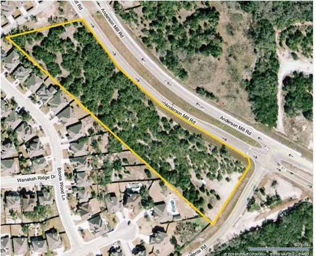 5.506 Acres at the hard corner intersection (NW corner) of Volente Road, FM 2769, and Anderson Mill Road. One of two remainder tracts after the expansion for 120' Anderson Mill Road ROW or boulevard. Property is close to both RM 620 and Lakeline Mall. Currently zoned TC-Transitional Commercial. City might consider higher retail uses with known development plan. City water and waste water available. 2 Curb cuts approved, one on Volente and one on Anderson Mill Road. Should be legal lot status as a result of condemnation, need confirmation of the City of Cedar Park.