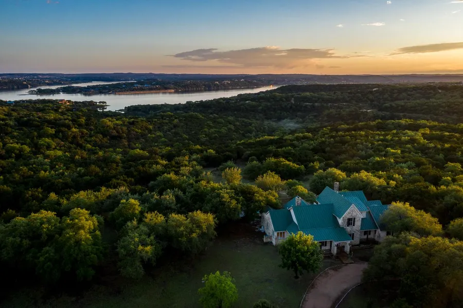 Ranch facilities consist of a three-bedroom, three-bath 3,442 square foot ranch house built in 2001. Cabinetry throughout is alder wood and flooring is American walnut and travertine. The great room has an oversized antique limestone fireplace with a mesquite mantel and wood bin that give a special rustic look. Overlooking Lake Travis and the surrounding hills, the master bedroom has a bath with Jacuzzi whirlpool and steam shower. The office is complete with alder bookcases and gun cabinet. It also has a beautiful vista of the lake and hills. Two bedrooms, a sitting room, bath, breakfast bar and balcony are located upstairs. The pool and outdoor fireplace adorn the backyard and make it an inviting place for entertaining. The bunkhouse, built in 2004, is also on the property to serve as a guesthouse or caretaker's residence. A two-stall barn with loft and two tack rooms are next door.