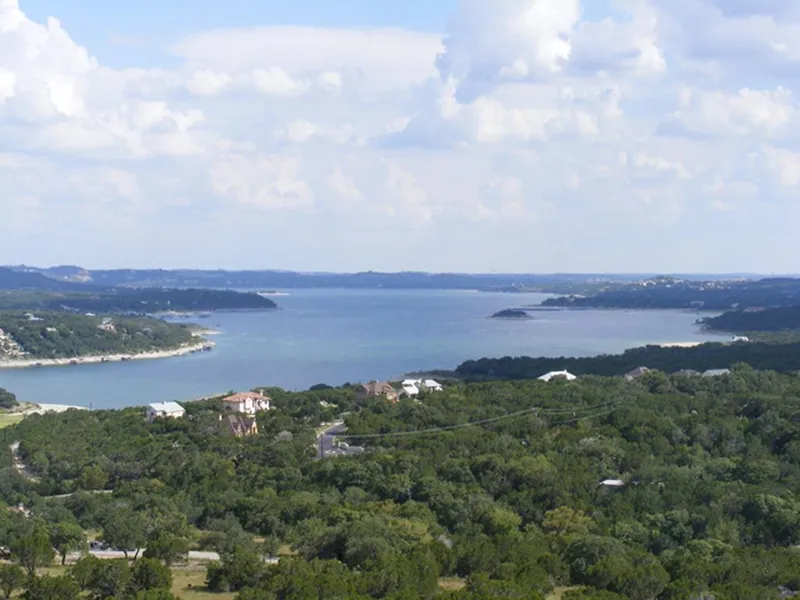 Fabulous View of Lake Travis main sailing basin, stunning night lights, sensational star gazing. Wide panoramic scenic hill country view too. 7.95 acres is 4 parcels on Tip Top Dr with 758 ft of paved accessible road frontage. Jonestown water supply line along street. Covenants 1600 sq ft minimum home size plus 2-car garage. Not in city so no city taxes & no zoning. Secluded, private estate site.