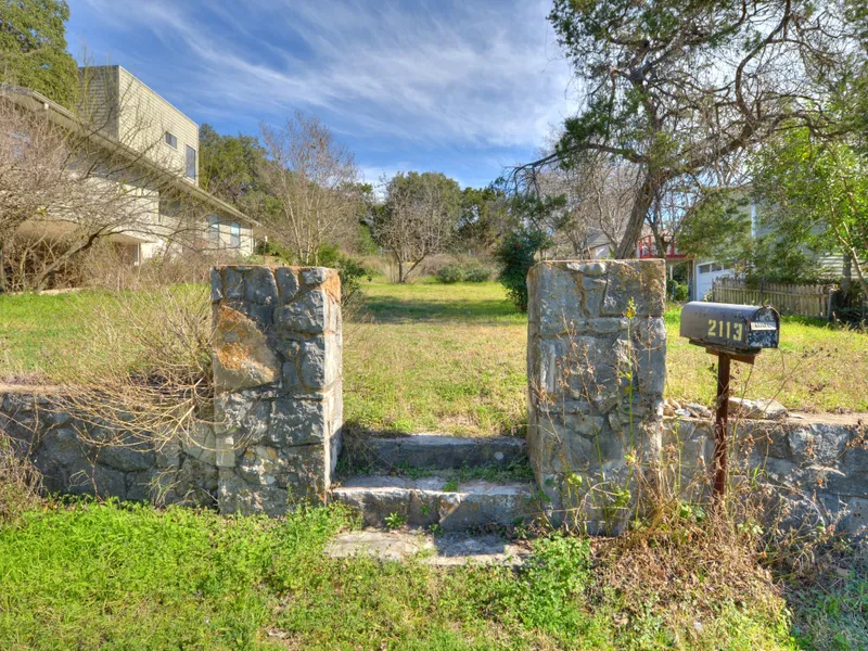 Rare, huge buildable lot in Travis Heights! ~Mostly Vacant 49.9 x 254sf, with buildable area in front. Across street with View of park & city. Huge oaks. Across street from park & pool. Existing stone home at back ~a great find for some & tear down for others ~NEEDS TLC ~Main living is on 2nd, accessed by wooden staircase. . Upstairs is 2bed, 1ba, nice kitchen & living with fireplace. Ground level also 1B/1ba/kitchen w/drop down table & living, & storage. Lockbox at top of stairs.(Up Key-to be added asap