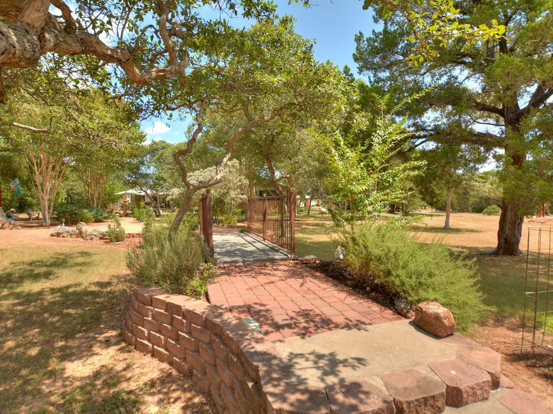 A hidden Oasis located just mins from the HEB Plus & Commuter Rail.Two acre lot w/ lots of gorgeous trees and usable space! The home is just over 2,600 sf w/ a formal living and dining area as well as a huge great room. Some recent updates include new ceramic tile in the kitchen and both bathrooms, new wall texture and paint in both baths. Spacious Master bedroom with on suite bath. Double patio doors allow easy access to the back patio from the Master.A huge 1500 sq ft Garage/Barn with lots of extras.