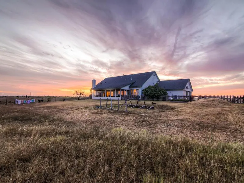 Only 17 miles from downtown Austin, this spectacular farmhouse rests on 35 acres of some of the prettiest, most peaceful country around! Sunset or sunrise views from almost every window, oversized master bathroom with huge closet. 5 bedrooms on the first floor plus a small office. Three living areas upstairs w/storage. Large central kitchen, huge utility room, 2-car garage, 3 paddock horse barn w/ tack room. Income opportunities: housing development, urban farm, nursing home, home school, preschool, etc.