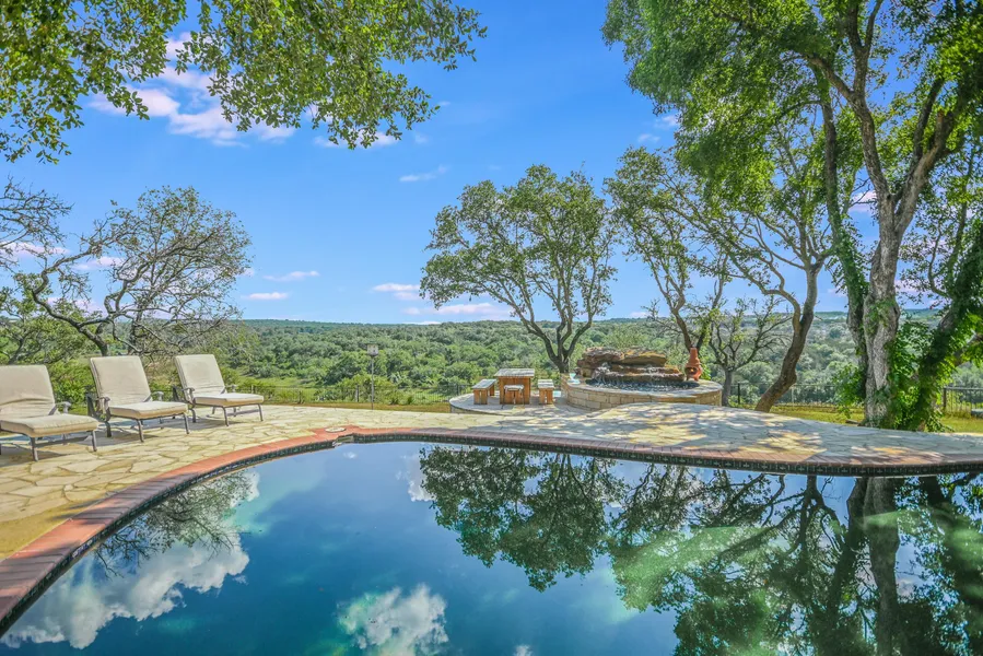 Outside, experience the peace and serenity around you, enjoy cooling off in the pool, barbecues with the family, or soaking in the hot tub. Take in the canyon views on the expansive patio while watching the sunset. The gentle rolling terrain adorned with magnificent oak trees creates an idyllic setting for equestrian pursuits.The neighborhood, nestled amidst the serene embrace of the Pedernales River, offers a sense of community rarely found elsewhere. With no through traffic, residents enjoy a peaceful ambiance where friendly waves and neighborly camaraderie are the norm.