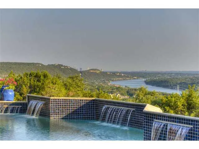 Gorgeous panoramic views of Lake Austin, City lights, and Austin CC golf course. Expansive decks with cool breezes for outdoor entertaining, sunsets to the West and gorgeous sunrises to the East. Oxygenated therapeutic pool soaks away stress and ailments. Travertine and Hardwood floors; high ceilings; open floor plan; gourmet professional kitchen; huge master suite with fireplace, walls of windows, 2 walk-in closets and access to outdoor areas. Private hilltop living, only minutes to Downtown.