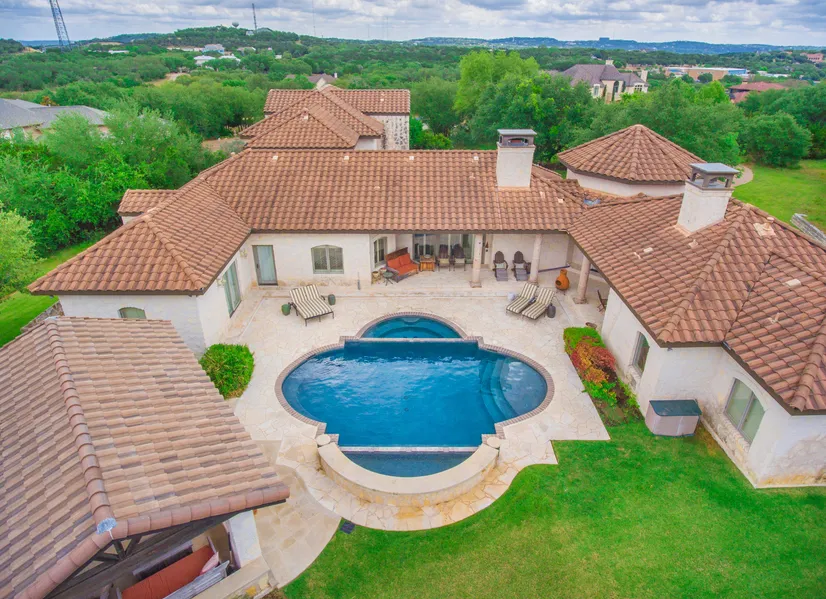 Spanish Mediterranean custom home in gated community of only 16 homes. Backyard oasis with inground pool (resurfaced and new heater & pump in last 2 years), cabana with new built-in grill and fireplace. Soak your cares away in the hot tub! All kitchen appliances have been upgraded to Viking Pro within the last 2 years. Beautiful master en-suite with fireplace & 2 large walk-in closets on the main level, with 2 additional beds and a bath. Separate bedroom w/living area (microwave & fridge) and full bath.