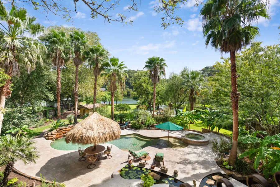 SHOWINGS AVAILABLE VIA FACETIME. CONTACT LISTING AGENT FOR VIRTUAL SHOWING.Italian Renaissance Waterfront Home on Lake Austin offers classical lake living in Austin Texas. A thoughtfully designed, open concept plan features a tree house feel, bringing natural beauty with lake views into every room. The boat house on the main body and separate private lagoon provides easy access to the lake and is just one avenue for outdoor enjoyment. Multiple levels of outdoor living areas, full outdoor kitchen with fireplace, and an oasis-style pool and koi pond lead to a manicured lawn with shady oaks, fruit and palm trees perfect for a hammock. The view of the sunrise glimmering on the lake is a great way to start each day. Interior details and finishes compliment the well-designed flow of the home. Cathedral ceilings with exposed beams, tile clad groin vaulted ceilings, wood and travertine floors, a...