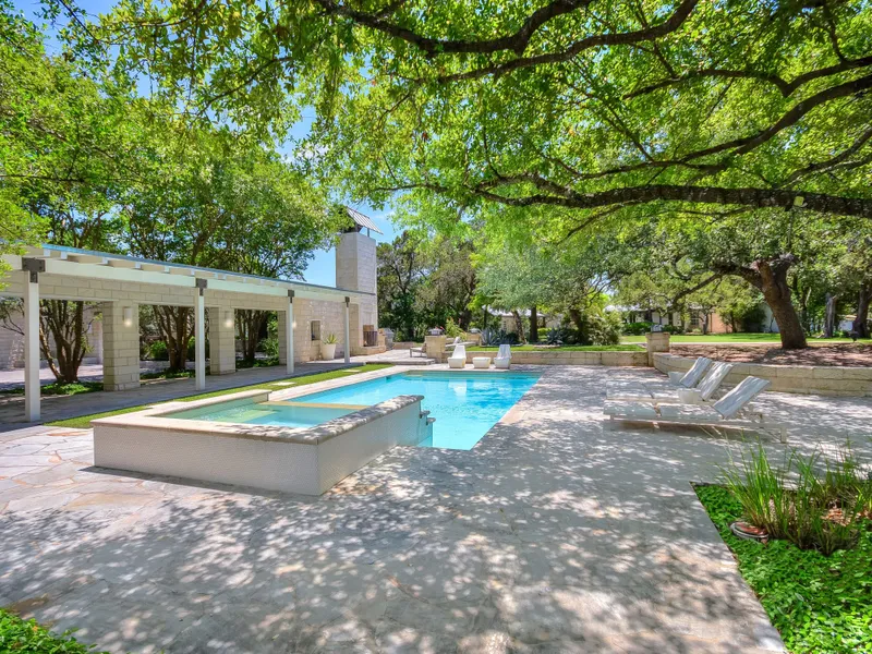 Seated on seven blissful acres overlooking the hills of Austin, Music Hill is a one-of-a-kind luxury private resort and ranch. Breathtaking panoramic views of the sweeping country and deep blue skyline embody a sense of place and purpose. Living up to its name, Music Hill houses a multi-purpose entertainment annex with a state-of-the-art recording studio, custom control room, rehearsal room, exercise/dance studio, media room, art room, and kitchen. The property also boasts a resort-style pool and hot tub, patio with outdoor fireplace, 3/4-mile jogging trail, organic gardens, and a 5-stall stable with a riding arena. Custom site lighting around the grounds illuminates the beautiful landscaping and natural environment. In total, the ~18,000 sq ft property can sleep up to 33 people with a main residence and three additional guesthouses, and a guest apartment, creating a total of 9 bedrooms ...