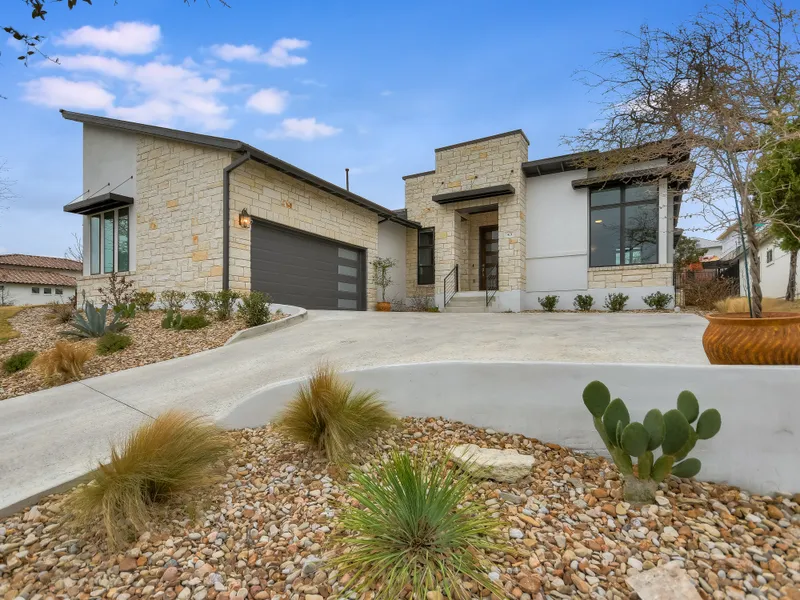 This Serene Hills property is simply stunning with a backyard oasis highlighted by a new (April 2021 completion) one-of-a-kind pool and spa complete with waterfall and extensive decking. This hill country modern one-story home, built in 2019, is sited on a highly desirable corner lot and provides breathtaking hill country views from the entry, kitchen and study. The open plan not only showcases the interiors custom features but also provides spectacular views and access to the pool and patio areas. The chefs kitchen features a large island, stainless steel appliances, a walk-in panty and an over-sized window at the sink providing views and an abundance of natural light. The living area is the pinnacle of elegance and sophistication with a vaulted ceiling and a gas fireplace with a floor to ceiling tile surround. Easy access to the pool and patio is provided by two floor-to-ceiling slidin...