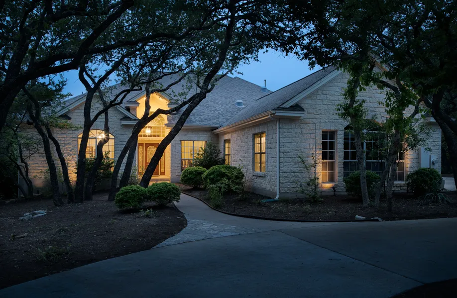 Stunning, traditional estate in the prestigious neighborhood of Barton Creek. The welcoming foyer invites you into this single-story home that features beautiful, mesquite hardwood floors throughout, tall ceilings, and a wall of windows that overlooks the expansive back deck and luxurious spa and pool. The updated kitchen features soapstone counters, a large center island, and a sink that overlooks the backyard haven. The kitchen is open to the family room featuring a striking fireplace with a full wall of beautiful limestone. The primary bedroom also features a fireplace and has an oversized bathroom with a separate tub and shower. The generously sized, secondary bedrooms are located on the opposite side of the home for great separation of spaces. Enjoy working from home in the study that is accented with walls of built-in bookshelves. The backyard is truly one-of-a-kind as it offers a resort-worthy pool and hot tub, extensively covered patio space plus an outdoor kitchen, and fireplace. Situated at the end of the cul-de-sac, this lush, sprawling property offers ~2.5 acres of native, mature landscaping that blooms breathtaking wildflowers in the Spring. The amazing lot is perfect for wandering and exploring nature and provides the ultimate in privacy. The home has a great drive-up appeal with a Texas limestone exterior, three-car side entry garage, and lovely circular driveway. Great energy-efficient features including updated HVAC (2020), roof (2015), hot water heater (2018), and added insulation (2014). Enjoy Barton Creek Resort & Spa and Country Club with award-winning golf courses, a clubhouse, fitness center, pool, and tennis courts. Also nearby is the 4,000 acre Barton Creek Habitat Preserve that provides a habitat for migratory songbirds and protects water quality in the Barton Creek watershed. Low tax rate of 1.77% and wonderful Private Schools in close proximity.