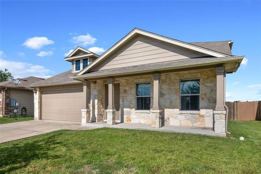 Nice 3 bed/2 bath Manor home centrally located, within minutes to Hwy 290 and Hwy 130. This home built in 2013 is ready for move in, with an upgraded luxury flooring, hard tile floors in the kitchen and one of the largest floor plans in Wildhorse Creek. With 2137 square feet, this home has three full bedrooms, and a bonus loft room upstairs that can serve as an office or easily converted to a fourth bedroom. It features a large open living with vaulted ceilings open to the second floor loft, granite countertops in the kitchen, brand new stove and the refrigerator conveys. The backyard comes with its own storage building/workshop as well. The home is located just minutes from Tesla, Samsung, Applied Materials, the Domain Shopping Center, and a short drive to ABIA.