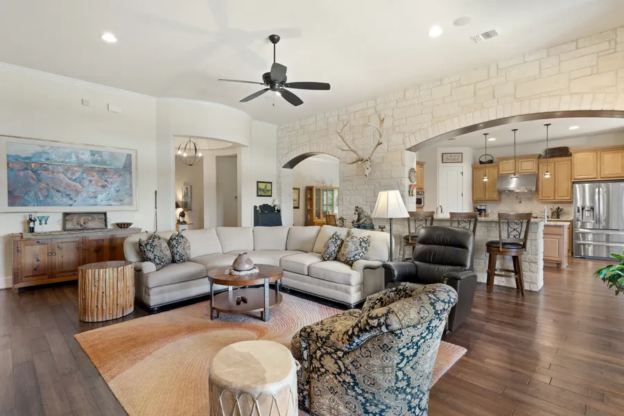 Amazing single-story home with four bedrooms, and three and a half baths. Step through the front door and you will see an inviting open living floorplan with glass sliding doors bringing the outside in. A spacious and cozy living area featuring a beautiful stone fireplace. The gourmet kitchen is a chef's delight with granite countertops and stainless steel appliances. The home also features an office, a formal dining area, and an expansive back patio and outdoor living space.