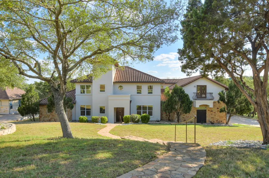 Privately situated on a 1.27-acre lot, this estate home, built by Alan Muskin, is located in the prestigious Westminster Glen neighborhood. Home located towards the front of the neighborhood, on a Cul-de-sac street. Classic stone and stucco exterior. Inside, the impressive foyer complimented with a "wow" circular staircase is just the beginning of more to offer. The generously appointed downstairs includes a large study w/ built-ins, spacious formal dining, an open family room to a chef's kitchen, and a breakfast area. The primary suite is downstairs. The upstairs of this lovely home offers two separate living spaces for endless/flexible use, three additional bedrooms, and two baths. Don't miss the ladder in one of the bedrooms to a secret getaway and the second laundry closet for upstairs convenience. The acre plus lot offers a backdrop of green space to enjoy the pool with a waterfall feature and spa, an outdoor kitchen area, and a wood-burning fireplace. This area is complete with a large covered back porch and electronic solar shades. Other notable features include an oversized pantry, ice maker, sub-zero refrigerator/freezer, a drop zone at the three-car garage entry/exit, laundry room sink, closets, and storage galore throughout. Located in Leander ISD but minutes from Central Austin, the Pennybacker Bridge, Austin Country Club, Lake Austin, and top restaurants. Recent updates include a new gas grill, exterior, and interior paint, and focal light fixtures including LED recessed canned lighting throughout. 1.9% tax rate!