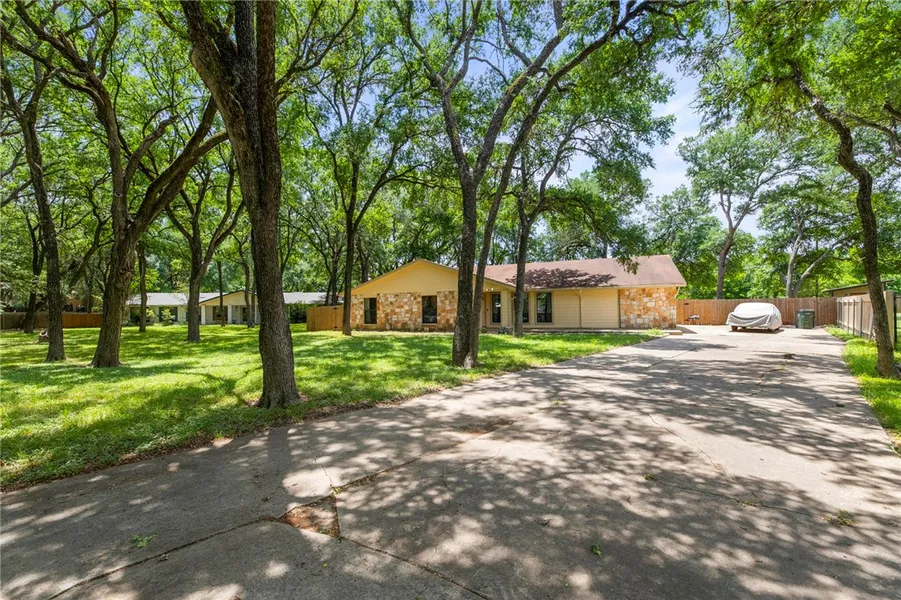 Sought after area of South Austin/Manchaca with No HOA, Low Tax Rate. Large Lot at .6+ acre with lots of Trees in a Quiet Neighborhood. Easy drive to Downtown and all Points of interest in South Austin. Attractive 1 story Ranch Style home in quiet neighborhood. Interior has many updates with new floors in Living areas, New Kitchen counters and appliances, new Paint and more. Generous Open Concept space for Living areas to Kitchen and Dining. Converted Garage area could be 4th bedroom, game room or office area. Privacy Fenced Back yard, large Workshop in back yard with Electricity.