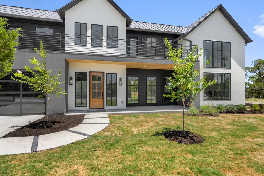Modern Farmhouse Design- New construction in South Jonestown Hills includes views of Lake Travis and the Hill Country. Master on the main level with two walk-in closets with dressing area. The kitchen has a large working pantry, a central island with quartz waterfall countertop.