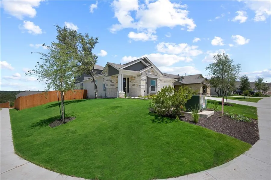 Gorgeous BRAND NEW 4 bedroom, 4 bathroom home in highly sought after Sweetwater Community. On a huge 10,773 sq.ft GREENBELT CORNER LOT with breathtaking HILL COUNTRY VIEWS. Open concept plan with 3 full bedrooms, 3 full bathrooms, an office and a covered patio on the main level. Bonus room added to 2nd level with a full bathroom, walk in closet and covered balcony with PANORAMIC HILL COUNTRY VIEWS. A large island kitchen, stainless steel appliances, quartz countertops, natural gas cooktop, a lot of natural light and wood-like tile flooring throughout most of the home. Spacious primary suite with dual vanities, plus shower and a large walk-in closet. Enjoy Sweetwater's resort-style community featuring 2 clubhouses with swimming pools, a splash pad, a fitness center, playgrounds, dog park, miles of bike/hike trails, basketball court and a soccer field. Exemplary Lake Travis ISD schools. Cl...