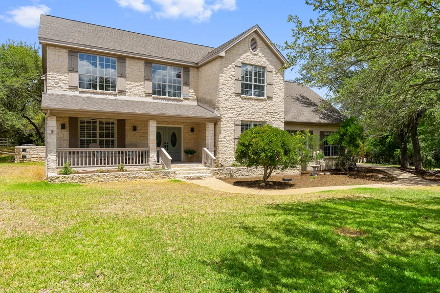 Texas Ranch W/Pool House (3370sq House/PH 808sqft =4178sqft) with 2.21 park-like acres on a Cul de sac lot with towering trees and hill country views. Seclusion & country living less than 30 min south of downtown Austin. Main level living includes a limestone floor to ceiling wood burning fireplace open to the tastefully upgraded kitchen & dining. Master boasts a large walk-in shower, garden tub & double vanities. Downstairs bedroom/study makes for a fabulous guest room with an adjacent full bath. Hidden away is an upstairs game room that is ideal for a teen retreat or media room! Privacy surrounds the relaxing pool with a separate pool house/guest house or studio containing a full kitchen and bath. Main house has 4beds/3baths/2living/2dining. Guest house has 1bed/1study/1living/laundry. Create memorable outdoor living experiences with an outdoor stone fire pit, 18'x24' enclosed garden, and playscape leaving plenty of room for sports. Located within the fabulous and sought-after Dripping Springs school district. Top it all off with convenience to parks, trails, shops, restaurants, movies, downtown Austin and the international airport!