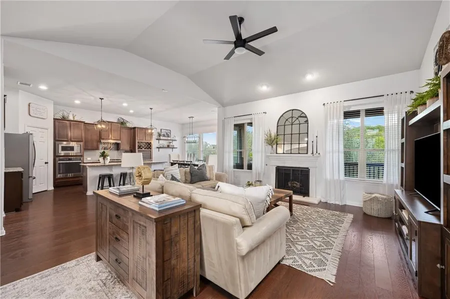 Exceptionally designed, spacious open concept home, located in the amenity rich community of West Cypress Hills, will wow you. Be sure to scroll through the photos to see the gorgeous POOL DESIGN for the backyard. Every detail and owner's style touch is remarkable, purposeful, and meticulous. This thoughtful floor plan includes 5 very large bedrooms - 2 upstairs, 4 bathrooms, formal and eat-in kitchen dining, expansive secondary game room or flex living space upstairs. The integrated kitchen, dining, and great room area allows for family fun and space for entertaining and gatherings. Cozy up for movie night or reading a book around the warmly crafted fireplace on cool evenings. The very large kitchen includes rich customized cabinetry with wine rack and appliance garage, stainless steel appliances, expansive island, and updated black fixtures. The master retreat has a spa-like feel with a door to exit to the outdoor covered porch, custom accent wall, French doors into the bathroom, two very big walk-in closets and deep soaking tub. With greenbelt space across the street, on the side, and behind this property - privacy and views abound. Relax on the back covered porch, as you enjoy the gorgeous views and take in the sweeping flat backyard. While savoring the views, grill out meals utilizing your complete summer kitchen. Plenty of space for play or a pool! Make sure to check out the one-of-a-kind stunning laundry room and under the stairs and attic storage areas. Oversized garage includes storage racks. Neighborhood has planned social events and gatherings. Amenities include: pools, park, playground, picnic area, sports courts and trails. Exemplary Lake Travis ISD schools with elementary right in the community. Close to restaurants, services, and Lake Travis.