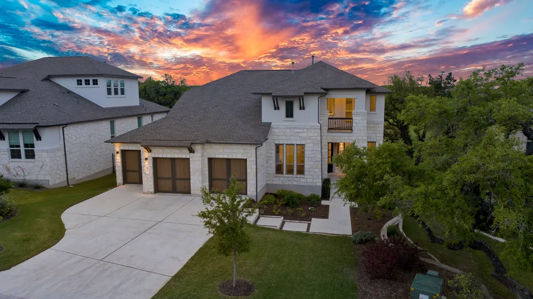 Nestled amongst cedar & oak trees, backing to community hiking trails, lies a truly special home. A former model with over 350k in upgrades, the owner added hardwood throughout, HD Duette blinds with room darkening blinds in all beds, reverse osmosis, designer lighting & hardware, a 72” windmill fan, extensive landscaping with new irrigation, fresh interior a paint & exterior stain. The kitchen is stunning with its 12’ custom soft close cabinetry & designer hardware. Carrera marble backsplash, quartz counters, hand-blown glass pendants, 8+ island & a farmhouse sink with reverse osmosis. A custom 12’ pantry & a planning desk area. GE Monogram appliances under warranty. Extensive lighting with cab, under cab, recessed lighting, speakers for Sonos (subscription). Breakfast area with mature tree views. The first-floor primary bedroom offers a 12’ tray ceiling, speakers for Sonos, 6 windows w/stunning views. Two custom 12’ tall closets, oversized tile and motion-activated light switches. 1GBPS ethernet with 2 network panels. Your spacious bath is a spa-like retreat. A shower with designer tile, shower niches, rain showerhead, quartz bench, soaking tub w/quartz surround. Two custom soft close vanities with quartz counters & designer lighting. Oversized floor tile, 12’ tall linen closet & private toilet room. At roughly 20’ by 32’, the upstairs flex room has a TV mount, a quartz island, pendant lights, wine fridge, soft close cabs ,fan, motorized blinds, balcony, as well as extensive recessed lights. The family room boasts 22’ ceilings w/cedar beams, 72” windmill fan & 36” herringbone tile above and below the gas fireplace. An oversized slider w/magnet close vertical blinds & windows above. The 3 car garage is conditioned, has insulated doors & extensive recessed lights for the workshop! For those of you who enjoy clean air & are sensitive to Austin allergies, this house has a special Aprilaire air filtration system.