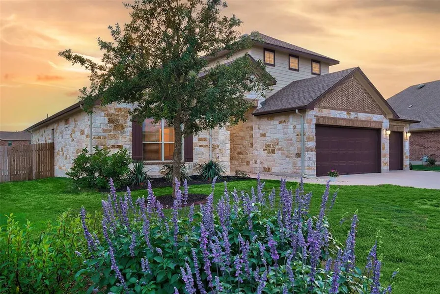 Get ready to spend your summer in this stunning home with an inground pool and a three car garage located in the sought-after neighborhood, The Park of Blackhawk, in Pflugerville! As you enter, you'll be greeted by an open floor plan with all four bedrooms and three full bathrooms conveniently located on the main floor. The game room and half bath are upstairs, perfect for entertaining guests or for use as a home office. This home features easy-to-maintain tile flooring and designer touches that give it a touch of elegance. Vaulted ceilings and decorative beams give the family room character as a central gathering place. The kitchen is a chef's dream, with a huge central island and seating for four, built-in stainless steel appliances, granite counters, sleek espresso-colored cabinets, and matching backsplash. The owner's suite features cathedral-style ceilings with wood beams and an ens...