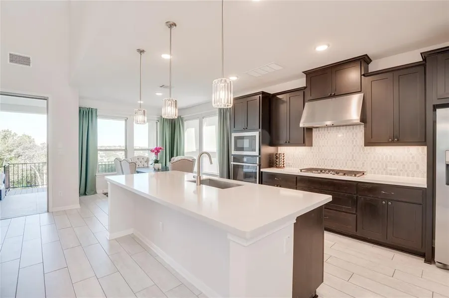 Views Views Views! This Taylor Morrison 'Terracotta' is a popular 2-story home in Leander's Travisso neighborhood. Why wait to build when this amazing home can be yours now! Over 2,500sf in a modern, relaxed home w/ 4 bedrooms, 3.5 bathrooms, casual dining, bonus room, dedicated study, 3-car garage & sweeping views in the resort-style community of Travisso. Downstairs features light plank tile & ample natural light beaming through the walls of windows into the family room, dining space & primary suite. With an open-concept plan, the family foodie is sure to appreciate preparing meals in this gourmet kitchen peering into the expansive family room & dining space. This fresh bright kitchen showcases a large center island, pendant lighting, SS appliances, quartz countertop & corner pantry. The family room features soaring ceilings & an oversized, collapsible sliding door to the patio designe...