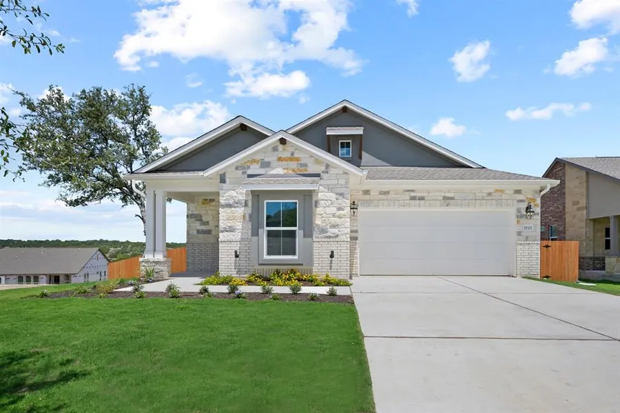BRAND NEW CONSTRUCTION READY NOW! Welcome to your dream home! This stunning property offers 4 bedrooms, 4 full bathrooms, and is located on a spacious 10,773 sq ft corner lot. But it's not just the interior that will captivate you. Step outside and discover the enchanting greenbelt and the breathtaking hill country views and imagine waking up to the serene beauty of nature every day. The first level boasts three spacious bedrooms, ensuring everyone has their own peaceful retreat. Additionally, there's an inviting office space, perfect for remote work or creative endeavors. The kitchen is a chef's delight, with a large island, stainless steel appliances, quartz countertops, natural gas cooktop, and an abundance of natural light. It's the perfect space to create culinary masterpieces and entertain guests relaxing on the patio enjoying a gentle breeze. The primary suite is a spacious retreat, offering dual vanities, a large shower, and a sizable walk-in closet. You'll love the luxurious feel of this private sanctuary. The charm continues on the second floor, where you'll find a generously-sized bedroom complete with a full bathroom, walk-in closet, and a private covered balcony that grants you unparalleled panoramic hill country views. Throughout much of the home, you'll find exquisite wood-like tile flooring, adding a touch of elegance and providing durability for everyday living. Each step you take will remind you of the exceptional craftsmanship and attention to detail that went into creating this masterpiece. Indulge in the resort-style Sweetwater community featuring 2 clubhouses with swimming pools, splash pad, fitness center, playgrounds, dog park, miles of bike/hike trails, basketball court and a soccer field. Exemplary Lake Travis ISD schools. Close to restaurants, shopping, tennis, golf and just 30 minutes to downtown Austin. Embrace the lifestyle you've always dreamed of and don't miss your chance to make this enchanting home yours!