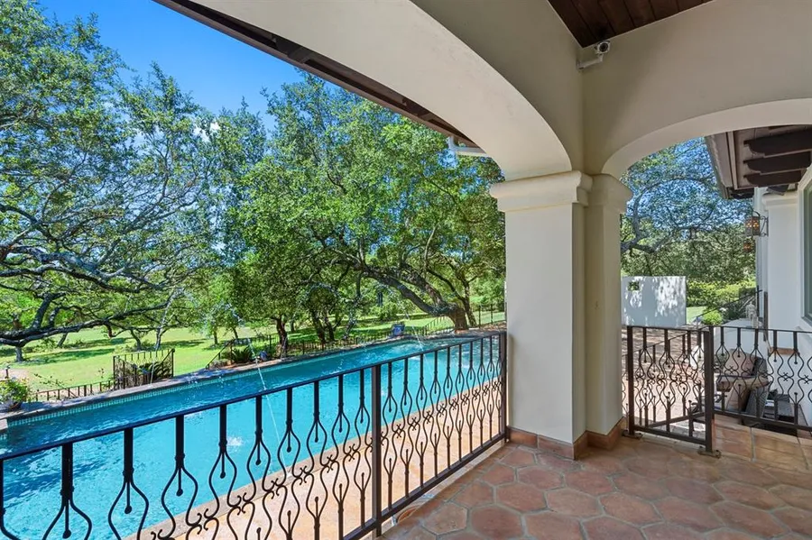 Immerse yourself in the pinnacle of refined living with this extraordinary Santa Barbara Style residence. Throughout the home, the custom architecture stands as a testament to exceptional craftsmanship. Knotty alder doors, custom tile work, extraordinary light fixtures, hand-textured walls, hand-painted ceilings, solid beams, and intricate woodwork grace every corner. The chef's kitchen is equipped with Viking appliances, including a 48" cooktop, ice maker, warming drawer, built-in refrigerator, and a commercial-grade water treatment system that provides exceptional water. An oversized pantry, complete with an additional refrigerator, a large utility room, ample built-in cabinets, and sink ensure practicality meets luxury. The spacious dining room, bathed in natural light from several picture windows, offers a welcoming atmosphere, complemented by a wood tray ceiling. The primary bedroom...