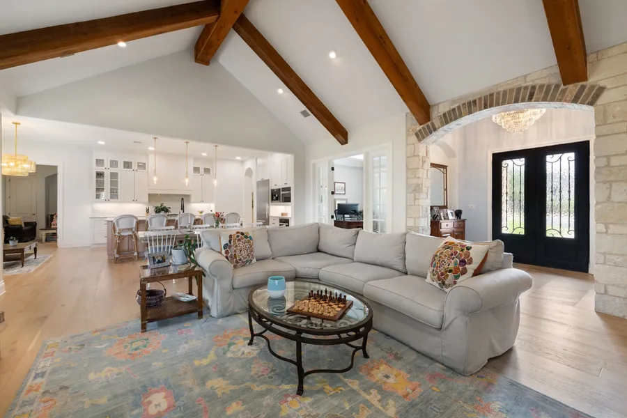 Nestled on a tranquil cul-de-sac in the gated community of The Hills of Lakeway, this splendid one-story residence embodies elegance and modern convenience. Step inside this beautiful home, where you'll be greeted by classic white oak floors throughout, creating a seamless flow that enhances the natural light filling each space.