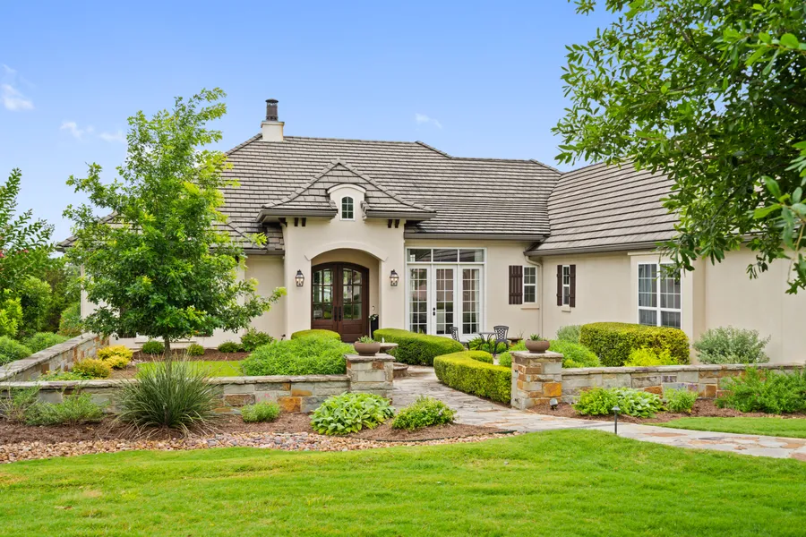 Charming French country-style custom home sitting on a 1.235 acre cul de sac lot. Enjoy morning coffee or evening shade from your east facing courtyard with soothing sounds of the water fountain. Move to the back patio to soak in sunsets over the hill country. Watch the beautiful Hunter Jumper horses at the renowned Madrone Ranch arena without the hassle of owning a horse property. Step inside a very livable, open, and efficient single-story floorplan that includes 4 bedrooms and 4 full bathrooms, along with a family room and separate media/playroom. The gourmet kitchen features a large picture window over the farmhouse sink, Thermador Professional appliances, and built-in nugget ice maker. The oversized granite island provides ample space for casual dining or entertain in your dining room overlooking the courtyard. Each bedroom is located within its own private corner for a nice separ...