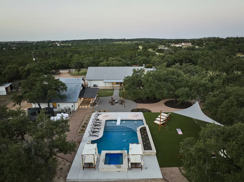 Discover luxury living on Fitzhugh Road in Austin, Texas, with this exquisite 16-person short-term rental. Nestled on 5 acres, this single-story, ranch-style home offers 4 fully furnished bedrooms, 3 bathrooms, and 5 showers, providing ample space for relaxation and comfort. The interior is elegantly designed with high-end finishes and modern amenities, ensuring a seamless blend of style and functionality.