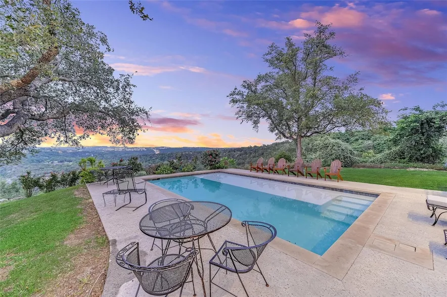 Welcome to The Madrones Estate, where luxury meets serenity on a breathtaking property perched atop one of Travis County s highest points, offering commanding views of Barton Creek and beyond. This exquisite estate embodies the perfect blend of modern elegance, tranquility, and convenience, making it an ideal sanctuary for those seeking a distinctive lifestyle in one of Texas most vibrant cities. Nestled on an expansive 5-acre lot, The Madrones Estate provides multiple vantage points to soak in the incredible views, while lush landscaping enhances the sense of privacy and serenity qualities rarely found at this price point. The home s contemporary design features massive windows and soaring ceilings that flood the interiors with natural light, offering panoramic views of the surrounding Hill Country from every angle. The seamless flow between the living, dining, and kitchen areas creates a welcoming environment for family gatherings and social events. The master suite is a true retreat, boasting a private balcony, dual ensuite bathrooms with a soaking tub, dual vanities, and spacious walk-in closets. The beautifully landscaped grounds frame the views while creating privacy, complete with a spacious patio, a sparkling swimming pool, ideal for relaxation and entertainment. The Madrones Estate has operated as a successful short-term rental, accommodating 14+ guests. Additionally, two garage apartments have been consistently rented out, providing extra income potential. Enjoy easy access to the Hill Country Galleria, Barton Creek Mall, and downtown Austin, with its eclectic mix of dining, shopping, and entertainment options. Surrounded by scenic views and close to numerous parks and recreational areas, this estate offers a serene escape from the hustle and bustle of city life. The Madrones Estate is more than just a home it s a lifestyle. Experience the perfect fusion of luxury, comfort, and convenience in this remarkable property.