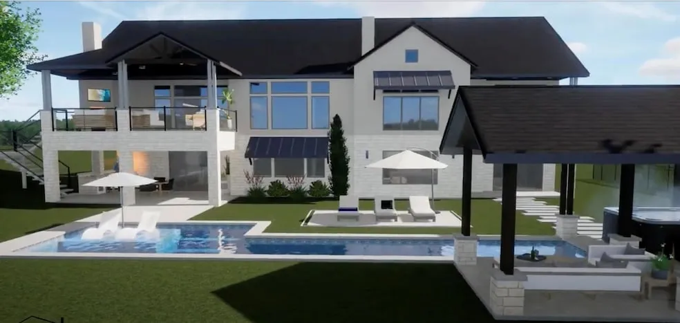 Modern Living in Belvedere- Nestled on a serene cul-de-sac, this custom 5-bedroom home masterfully crafted by Arbogast Custom Homes integrates seamlessly into its natural surroundings, emphasizing both energy efficiency and sophistication. High-quality finishes abound, including Andersen windows, foam insulation, commercial-grade appliances, oversized doors, a standing seam metal roof, and extensive use of wood and stone, catering to even the most discerning buyer. Oversized windows fill the home with natural light. The gourmet kitchen, fitted with premium appliances, flows effortlessly into the vaulted living area, creating a warm and inviting atmosphere. The formal dining room, complete with a serving area, adds an element of elegance for entertaining. A dedicated office space caters to your professional needs. The luxurious primary suite boasts a private balcony, a lavish bath, and dual closets, providing a tranquil haven. The lower level features a central living area/game room and three bedrooms, with direct access to the summer kitchen, hot tub, and private, flat backyard. Set on just over an acre and backing to green space, this home offers added privacy and picturesque views, making it perfect for luxurious daily living, and effortless entertaining. With an approved pool and cabana plan, the outdoor enjoyment possibilities are boundless. A separate 1/1 casita offers guests their own private retreat. Belvedere is an award-winning community with neighborhood center including a lazy river pool, splash pad, sports court, fishing ponds, & an 80-acre nature preserve with hiking trails. Convenient to the Hill Country Galleria Mall, and shopping centers in Bee Cave, Lakeway, Dripping Springs, and only 30 minutes from Downtown Austin. Located in the Texas Hill Country with abundant year-round outdoor activities just minutes away, this is the perfect home to enjoy for years to come. Zoned to Lake Travis ISD. *Photo of pool/cabana is a rendering