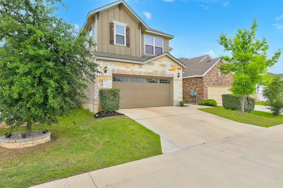 Welcome to your dream home in the heart of the desirable Carmel West community! Built in 2019, this stylish two-story residence boasts four spacious bedrooms and three full baths, offering the perfect blend of functionality and contemporary design. Step inside to a bright, open floorplan featuring a modern kitchen with granite countertops, a center island, pantry, and recessed lighting-ideal for entertaining or daily family life. The inviting living spaces are accentuated by large windows and glass doors that flood the home with natural light. A guest-friendly bedroom and full bathroom are located on the main floor, while the upstairs hosts the luxurious primary suite and additional bedrooms. Enjoy the privacy of a landscaped backyard with wood fencing, and relax on the covered front and rear porches. The attached two-car garage and extended driveway offer plenty of parking and storage. Located within Pflugerville ISD and its close proximity to shopping, schools, and commuter routes, this home offers exceptional value and convenience.