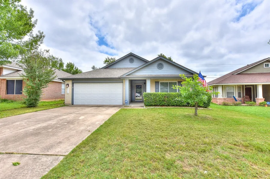 Move-In Ready! Charming 3 bedroom, 2 bath home on a cul-de-sac lot in close-in west Pflugerville! Updated kitchen with stainless steel appliances-the refrigerator conveys - stainless farmhouse sink, granite counter tops, subway tile back splash, stone facade at breakfast bar, dining area with bay window & walk-in pantry. Kitchen is open to the large family room with gas log fireplace and a wall of windows for lots of natural light. The primary bedroom has a stylish barn door that opens to the en-suite bath with quartz vanity top, oversized walk-in shower and big walk-in closet. Additional updates include beautiful laminate wood look planking throughout the living areas (carpet in bedrooms only), rectangular ceramic tile, lighting & ceiling fans, added full gutters with leaf guard covers in 2020, water softener & new energy efficient windows installed 2024, new garage door & opener, roof ...