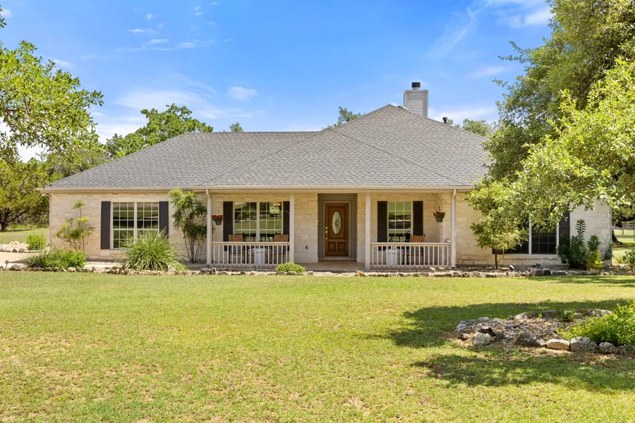 Hill Country charm waiting for you! Situated on 1.29 acres in the serene and highly sought-after Bear Creek Estates, this beautifully crafted single-story stone home offers peaceful Hill Country living at its finest. Surrounded by mature trees, this property combines privacy with natural beauty in an unbeatable location. Step inside to discover a thoughtfully designed floor plan with effortless flow between living, dining and kitchen spaces. The spacious living room features a lovely stacked stone corner fireplace, perfect for cozy evenings. The kitchen is centrally located between the formal dining room and breakfast area, offering a breakfast bar, oversized sink, ample counter space and solid wood cabinets. Appliances include microwave, gas range/oven, ss dishwasher and ss refrigerator. The private primary suite is a true retreat, complete with direct access to the back patio, serene backyard views and a generously sized en suite bathroom featuring a garden tub, separate shower, dual-sink vanity and walk-in closet. Secondary bedrooms share a full bathroom that includes a shower/bathtub combo. A bonus is the beautiful outdoor space with a generous covered front porch and covered back patio ideal for those magical Austin evenings. The land is full of potential and ideal for a future pool, garden or even a guest house. Whether you’re dreaming of outdoor entertaining or peaceful evenings under the trees, this property delivers the space and freedom to do it all. Zoned to the exemplary Dripping Springs ISD, it’s a standout opportunity in one of the most desirable communities just outside Austin. ROOF Sept. 2023, HVAC Aug 2023. Enjoy the privacy and tranquility of Hill Country living, just minutes from Austin conveniences and the heart of Dripping Springs.