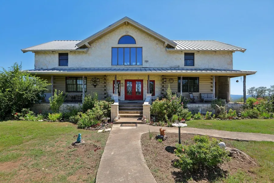 Custom Log & Limestone Home with Panoramic Lake Travis Views Nestled atop a hill with 62 acres of ag-exempt land and a private 1-acre homesite, this custom-built log and limestone home offers an extraordinary combination of tranquility, luxury, and natural beauty. The property is fully fenced and cross-fenced, providing both security and versatility for a variety of uses. This unique 3-bedroom, 3.5-bathroom home features two full kitchens, multiple living areas, and two fireplaces, creating an inviting space for both relaxation and entertaining. Whether you're hosting friends or enjoying peaceful evenings, the expansive interiors complement the stunning surroundings. The attached 2-car garage, along with a separate barn, provides ample storage and functional space for all your needs. With panoramic views of Lake Travis and the rolling Texas Hill Country, this estate offers the perfect blend of seclusion, luxury, and endless possibilities for outdoor living. If you’re looking for a retreat that combines rustic elegance with modern comforts, this exceptional property is the perfect place to call home