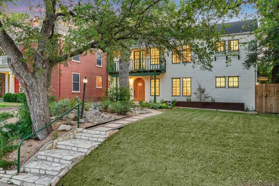 Step into a timeless treasure in the heart of the historic Aldridge Place neighborhood. Built in 1936 and lovingly transformed over the years, this architectural gem artfully blends original 1930s charm with thoughtful modern updates. Originally designed as a duplex and later converted into a single-family home, it retains many of its signature details that evoke a sense of history and character. From the moment you arrive, the striking, site-built arched front door welcomes you into a home rich with personality. Inside, meticulously refinished hardwood floors, original doors and hardware, and a custom wet bar with the original inlaid sink cover tell stories of decades past. Two fireplaces, one on each level and flanked by original cabinetry, invite cozy gatherings and time for quiet reflection. The residence now offers four bedrooms, three full bathrooms. You will find a half bath in the pool house, which sits beside a recently resurfaced sparkling pool complete with a graceful water fountain—a perfect retreat for warm afternoons and evening entertaining. Nestled in the streets of Aldridge Place, this home is just steps from Hemphill Park, a mile from the University of Texas, and two miles from downtown. Families will appreciate its placement within the highly sought-after Lee Elementary School zone. With its distinctive charm, elegant details, and prime location, this home offers not just a place to live, but a storybook setting to call your own.